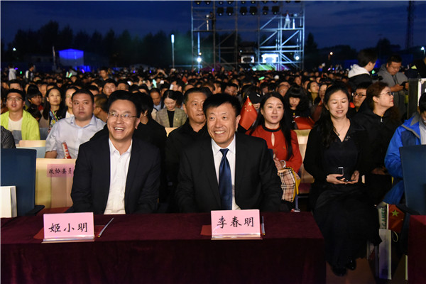 我校党委书记安军与中国一汽集团人力资源部副部长张国华在晚会现场观看演出