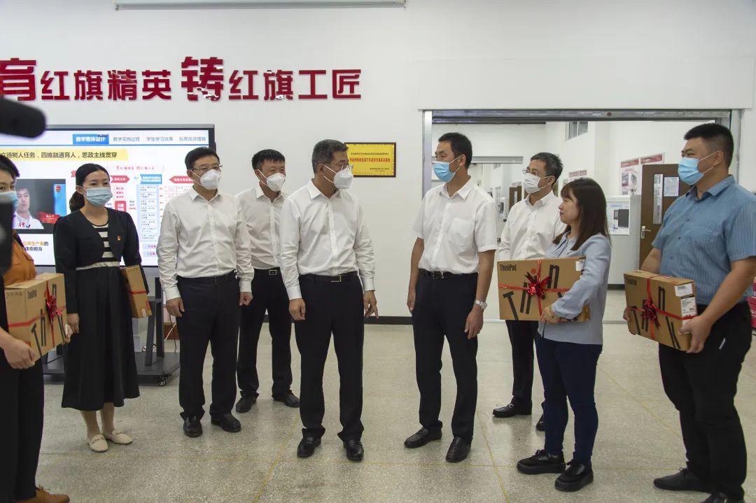 在汽车工程学院,王子联察看了全国教师教学能力大赛备赛及数字化模型室在线上课情况,给学校优秀教师代表丁勇、佟丽珠、彭博等送上教师节礼物,与在场教师一一握手,亲切交谈,并合影留念;同时向辛勤耕耘、无私奉献的汽专全体教职工致以节日的亲切问候和诚挚祝福,勉励大家在工作岗位上继续拼搏,再创佳绩。
