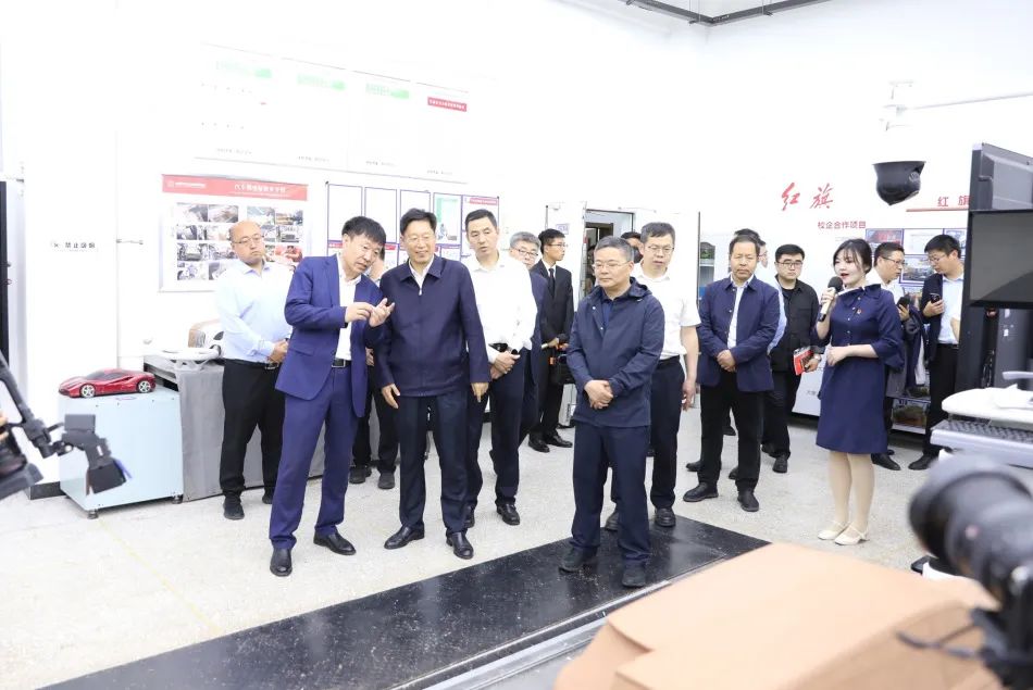 调研组一行先后来到我校智能制造协同创新中心、汽车试验技术实训区、汽车造型技术实训区、汽车智能技术实训区、捷豹路虎实训区等实地参观调研。调研组详细了解了我校人才培养模式、实训基地建设等工作开展情况,对我校校企合作、产教融合等办学成果给予充分肯定和高度评价。